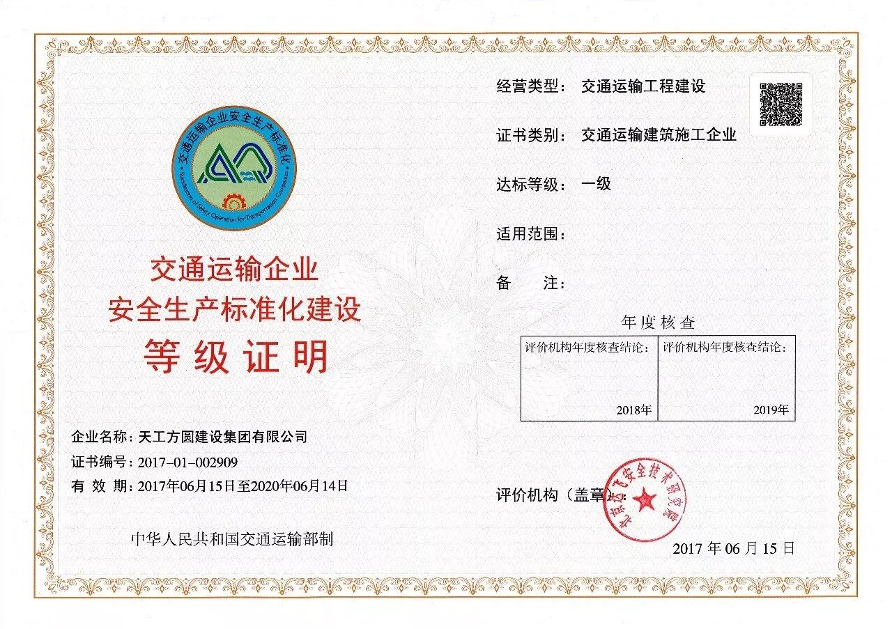 此证书的获得,标志着公司安全生产规范化、制度化、科学化管理水平达到了国家安全监督管理总局的相关规定要求。将为促进公司安全生产管理再上一个新台阶,起到积极作用。